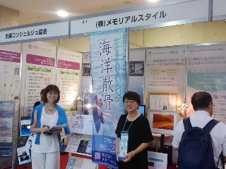 海洋散骨を扱うメモリアルスタイルは、供養コンシェルジュ協会と共同で出展、「供養コンシェルジュ」という資格制度を始めて3年、葬儀・供養業界で認知が上がってきているようです。海洋散骨や手元供養などをはじめ、葬儀後のアフターサポートをワンストップで提案できる「供養のお世話係」の育成に力が入っていました。