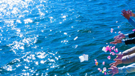 博多湾は玄界灘に面した内海で、九州最大の博多港は国際旅客ターミナルでもあり、海上交通の要所になっています。海洋散骨は湾内にある能古島よりも北側で行います。