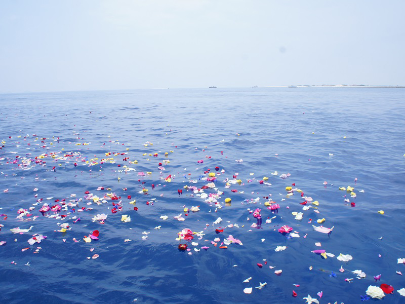 慶良間諸島沖で散骨をご希望というご家族。那覇市内の泊港から出発して慶良間の入り口のチービシの近くで海洋散骨をおこないました。梅雨時であいにくの曇り空でしたが、風もなく穏やかな散骨式となりました。ケラマブルーの透き通った青い海からウミガメが顔を出すなどのサプライズもあり思い出に残るクルーズになりました。